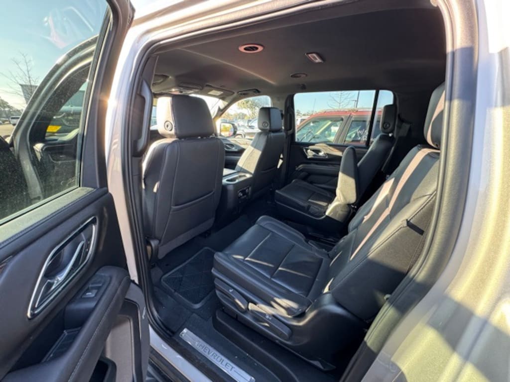 10-Way Power Driver & Passenger Seat Adjusters, 1st & 2nd Row Color-Keyed Carpeted Floor Mats, 2nd Row Manual Bucket Seats, 3.23 Rear Axle Ratio, 3rd row seats: split-bench, 4-Wheel Disc Brakes, 9 Speakers, ABS brakes, Air Conditioning, Alloy wheels, AM/FM radio: SiriusXM with 360L, Apple CarPlay/Android Auto, Auto High-beam Headlights, Auto-Dimming Inside Rear-View Mirror, Auto-dimming Rear-View mirror, Automatic temperature control, Bose 9-Speaker Stereo Audio System Feature, Brake assist, Bright Front & Rear Door Sill Plates, Bumpers: body-color, Color-Keyed Carpeting Floor Covering, Compass, Delay-off headlights, Driver & Front Outboard Passenger Airbags, Driver door bin, Driver vanity mirror, Dual front impact airbags, Dual front side impact airbags, Electronic Stability Control, Emergency communication system: OnStar and Chevrolet connected services capable, Enhanced Driver Information Center, Floor Console w/Storage Area, Four wheel independent suspension, Front anti-roll bar, Front Bucket Seats, Front Center Armrest, Front dual zone A/C, Front reading lights, Fully automatic headlights, Garage door transmitter, Hands-Free Rear Power Programmable Liftgate, Heated door mirrors, Heated Driver & Front Passenger Seats, Heated front seats, Illuminated entry, Infotainment Display, Leather-Appointed Seating, LED Daytime Running Lamps, License Plate Front Mounting Package, Low tire pressure warning, Memory seat, Memory Settings For Driver, Navigation System, Occupant sensing airbag, Outside temperature display, Overhead airbag, Overhead console, Panic alarm, Passenger door bin, Passenger vanity mirror, Power door mirrors, Power driver seat, Power Liftgate, Power passenger seat, Power steering, Power windows, Preferred Equipment Group 1LT, Premium audio system: Chevrolet Infotainment 3 Premium, Premium Smooth Ride Suspension, Radio: Chevrolet Infotainment 3 Premium System, Rain sensing wipers, Rear air conditioning, Rear anti-roll bar, Rear reading lights, Rear seat center armrest, Rear window defroster, Rear window wiper, Remote keyless entry, Remote Start, Roof rack: rails only, Security system, SiriusXM Radio w/360L, Speed control, Speed-sensing steering, Split folding rear seat, Spoiler, Steering wheel mounted audio controls, Tachometer, Telescoping steering wheel, Tilt steering wheel, Traction control, Trip computer, Universal Home Remote, Variably intermittent wipers, Voltmeter, Wheels: 18" x 8.5" Bright Silver Painted Aluminum, Wireless Charging, Wrapped Steering Wheel.