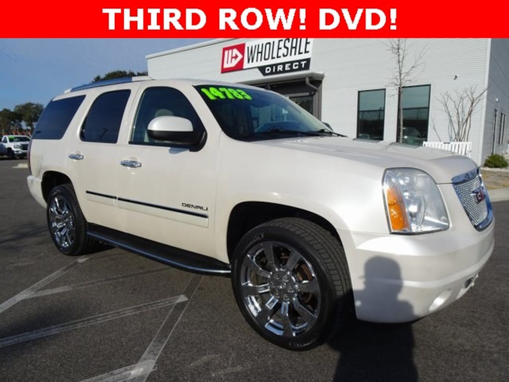 10 Speakers, 1st & 2nd Row All-Weather Floor Mats, 20" x 8.5" Chrome Aluminum Wheels, 22" x 9.0" Steel Interim (LPO) Wheels, 2nd Row Power Seat Release Only, 2nd Row Reclining Captain's Bucket Seats, 3.42 Rear Axle Ratio, 3rd Row All-Weather Floor Mats, 3rd row seats: split-bench, 4-Wheel Disc Brakes, ABS brakes, Adjustable pedals, Air Conditioning, Alloy wheels, AM/FM radio: SiriusXM, Auto-dimming door mirrors, Auto-dimming Rear-View mirror, Auto-leveling suspension, Automatic Air Level Control, Automatic temperature control, Autoride Suspension Package, Auxiliary External Transmission Oil Cooler, Body-Color Power-Adjustable Heated Outside Mirrors, Bodyside moldings, Bumpers: body-color, CD player, Chrome wheels, Color-Keyed Heated Leather-Wrapped Steering Wheel, Compass, Delay-off headlights, Denali Package, Driver door bin, Driver vanity mirror, Dual front impact airbags, Dual front side impact airbags, DVD-Audio, Electronic Stability Control, Emergency communication system: OnStar Directions & Connections, Exterior Parking Camera Rear, Floor Console w/Storage Area, Front anti-roll bar, Front Bucket Seats, Front Center Armrest, Front dual zone A/C, Front fog lights, Front Full-Feature Reclining Bucket Seats, Front reading lights, Front Round Halogen Fog Lamps, Front wheel independent suspension, Fully automatic headlights, Garage door transmitter, Heated & Cooled Driver & Front Passenger Seats, Heated 2nd Row Seats, Heated door mirrors, Heated front seats, Heated rear seats, Heated steering wheel, Heavy-Duty Air-to-Oil External Engine Oil Cooler, Illuminated entry, Inside Rear-View Auto-Dimming Mirror, Leather Shift Knob, Leather steering wheel, License Plate Front Mounting Package, Low tire pressure warning, Luggage Rack Center Rails, Memory seat, Navigation System, NavTraffic, Occupant sensing airbag, Outside temperature display, Overhead airbag, Overhead console, Panic alarm, Passenger door bin, Passenger vanity mirror, Pedal memory, Perforated Nuance Leather-Appointed Seat Trim, Power door mirrors, Power driver seat, Power Liftgate, Power passenger seat, Power steering, Power Tilt-Sliding Sunroof w/Express-Open/Close, Power windows, Power-Adjustable Pedals For Accelerator & Brake, Radio data system, Radio: AM/FM/SiriusXM Stereo w/CD/Navigation, Rear air conditioning, Rear anti-roll bar, Rear audio controls, Rear Power-Operated Liftgate, Rear reading lights, Rear Vision Camera, Rear window defroster, Rear window wiper, Rear-Seat DVD Player Entertainment System, Remote keyless entry, Remote Vehicle Starter System, Roof rack, Security system, Side Blind Zone Alert, SiriusXM Satellite Radio, Speed control, Split folding rear seat, Spoiler, Steering wheel memory, Steering wheel mounted audio controls, Sun, Entertainment & Destinations Package, Tachometer, Tilt steering wheel, Traction control, Trip computer, Turn signal indicator mirrors, Universal Home Remote, USB Port, Variably intermittent wipers, Ventilated front seats, Voltmeter, Wheels: 22" Chrome 8-Single Spoke (LPO) (DISC).