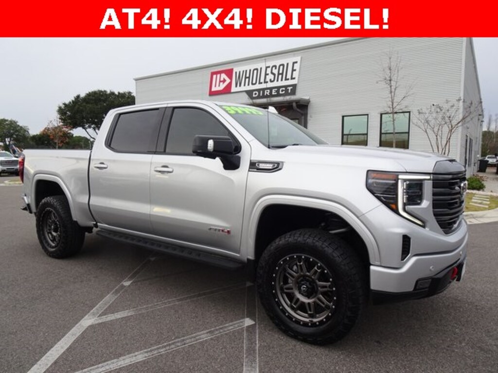 10-Way Power Driver Seat Adjuster w/Lumbar, 10-Way Power Passenger Seat Adjuster w/Lumbar, 120-Volt Bed Mounted Power Outlet, 120-Volt Instrument Panel Power Outlet, 18" x 8.5" Machined Aluminum Wheels, 2 Charge/Data USB Ports Inside Center Console, 2 Type-C Charge-Only Rear USB Ports, 2 USB Ports, 220 Amp Alternator, 3.23 Rear Axle Ratio, 4-Wheel Disc Brakes, 7 Speakers, ABS brakes, Adaptive Cruise Control, Air Conditioning, Alloy wheels, AM/FM radio: SiriusXM with 360L, Apple CarPlay/Android Auto, AT4 Preferred Package, AT4 Premium Package, Auto High-beam Headlights, Auto-dimming door mirrors, Auto-dimming Rear-View mirror, Auto-Locking Rear Differential, Automatic Emergency Braking, Automatic temperature control, Bed View Camera, Black Chrome Header & Grille Insert Bars, Block heater, Body Color Wheel Arch Moldings (LPO), Brake assist, Buckle to Drive, Bumpers: body-color, Color-Keyed Carpeting Floor Covering, Compass, Deep-Tinted Glass, Delay-off headlights, Driver door bin, Driver Memory, Driver vanity mirror, Dual front impact airbags, Dual front side impact airbags, Electric Rear-Window Defogger, Electrical Steering Column Lock, Electronic Stability Control, Emergency communication system: OnStar and GMC Connected Services capable, Engine Block Heater, Floor-Mounted Center Console, Following Distance Indicator, Forward Collision Alert, Front anti-roll bar, Front Bucket Seats, Front Center Armrest, Front dual zone A/C, Front fog lights, Front Pedestrian Braking, Front Prem Floor Liners w/Removable Carpet Insert, Front Rainsensing Wipers, Front reading lights, Front wheel independent suspension, Fully automatic headlights, GMC Connected Access Capable, HD Rear Vision Camera, HD Surround Vision, Heated 2nd Row Outboard Seats, Heated door mirrors, Heated Driver & Front Outboard Passenger Seating, Heated front seats, Heated rear seats, Heated Steering Wheel, Heated steering wheel, Heavy-Duty Air Filter, Hill Descent Control, Hitch Guidance, Hitch Guidance w/Hitch View, Illuminated entry, In-Vehicle Trailering App, Integrated Trailer Brake Controller, IntelliBeam Automatic High Beam On/Off, Keyless Open & Start, Lane Keep Assist w/Lane Departure Warning, LED Cargo Area Lighting, Low tire pressure warning, Memory seat, Multicolor 15" Diagonal Head-Up Display, Navigation System, Not Equip w/Heat & Vent Seat Cushion Blower Motor, Not Equipped w/Front & Rear Park Assist, Not Equipped w/Steering Column Lock, Occupant sensing airbag, Off-Road High Clearance Step (LPO), Off-Road Suspension, OnStar & GMC Connected Services Capable, Outside temperature display, Overhead airbag, Overhead console, Panic alarm, Passenger door bin, Passenger vanity mirror, Perforated Front Leather Seat Trim, Perimeter Lighting, Power Door Locks, Power door mirrors, Power driver seat, Power Front Passenger Windows w/Express Up/Down, Power Front Windows w/Driver Express Up/Down, Power passenger seat, Power Rake & Telescoping Steering Column, Power Rear Windows w/Express Down, Power Sliding Rear Window w/Rear Defogger, Power steering, Power windows, Preferred Equipment Group 4SB, Premium audio system: GMC Infotainment System, Premium Bose 7-Speaker Sound System, Push Button Start, Radio data system, Radio: Premium GMC Infotainment Audio System, Rain sensing wipers, Rear Camera Mirror, Rear Cross Traffic Braking, Rear Pedestrian Detection, Rear Prem Floor Liners w/Removable Carpet Insert, Rear reading lights, Rear seat center armrest, Rear step bumper, Rear Wheelhouse Liners, Rear window defroster, Red Recovery Hooks, Remote keyless entry, Remote Vehicle Starter System, Safety Alert Seat, Security system, Sierra Safety Plus Package, SiriusXM w/360L, Speed control, Speed-sensing steering, Split folding rear seat, Spray-On Pickup Bed Liner w/AT4 Logo, Steering Wheel Audio Controls, Steering wheel mounted au